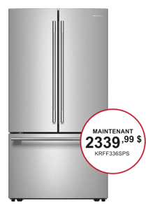 *L’offre se termine le 1er avril 2026 à 23h59 HNE. La remise est appliquée sur le prix de vente, à l'exclusion des taxes, de la livraison, de l'installation/désinstallation et de l'enlèvement. Remise de 200 $ à l'achat de 2 gros électroménagers KitchenAid® admissibles. Remise de 300 $ à l'achat de 3 gros électroménagers KitchenAid® admissibles. Remise de 400 $ à l'achat de 4 gros électroménagers KitchenAid® admissibles. Remise de 500 $ à l'achat de 5 gros électroménagers KitchenAid® admissibles ou plus. Les gros électroménagers sont limités aux réfrigérateurs, cuisinières, tables de cuisson, fours muraux, fours à micro-ondes, lave-vaisselle, hottes et congélateurs KitchenAid® admissibles. Ouvert aux résidents canadiens seulement. Livraison à une seule adresse canadienne. Jusqu'à épuisement des stocks.
