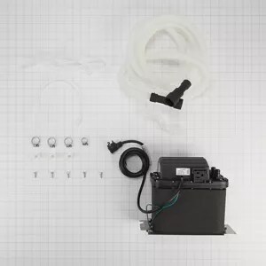 La trousse de vidange pour machine à glaçons aide à drainer l’excès d’eau résultant de glace fondante à l’intérieur de votre appareil. C’est un accessoire qui peut être utilisé avec la plupart des machines à glaçons fabriquées en 2000 ou après. Vérifiez que votre numéro de modèle est compatible. Cette pompe est conçue pour éliminer l’excès d’eau résultant de glace fondante, jusqu’à 10 pieds de haut. Le remplacement de cet accessoire nécessitera des outils manuels de base, un démontage de la machine à glaçons et l’expérience de réparation d’un novice. Vous devez débrancher la machine à glaçons ou couper le disjoncteur de la résidence lié à l'électroménager avant d'installer cette pièce. Assurez-vous aussi de fermer l’alimentation en eau avant de commencer.
